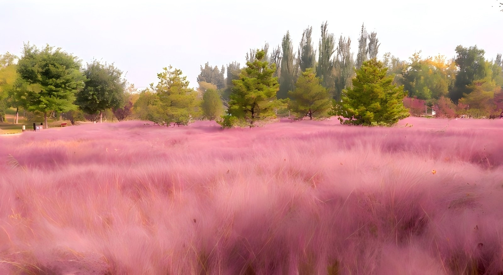 Zurzeit erstrahlt im Zigu-Edenpark im Bezirk Fengtai eine über 6,7 Hektar große Fläche von Rosa Haargras in einem traumhaften Rosaton – wie ein rosa Pinselstrich, den der Herbst über die Erde gemalt hat. Die Blütezeit dauert bis Ende Oktober.