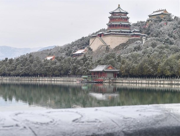 Im Schnee bietet der Xiangshan-Park den Besuchern wunderschöne Landschaften. Die Mitarbeiter des Parks haben im Voraus rutschfeste Einrichtungen eingerichtet und Sicherheitsschilder aufgestellt, um die Sicherheit der Besucher beim Spaziergang im Park zu gewährleisten.