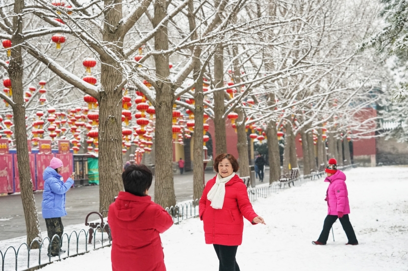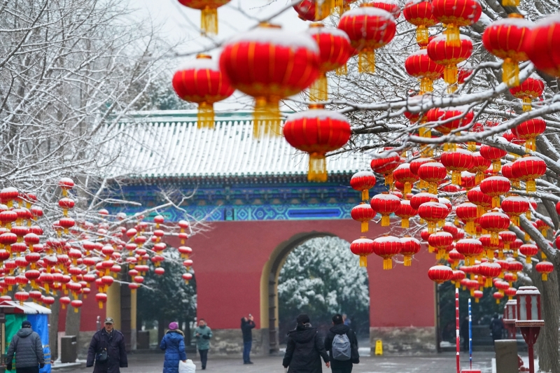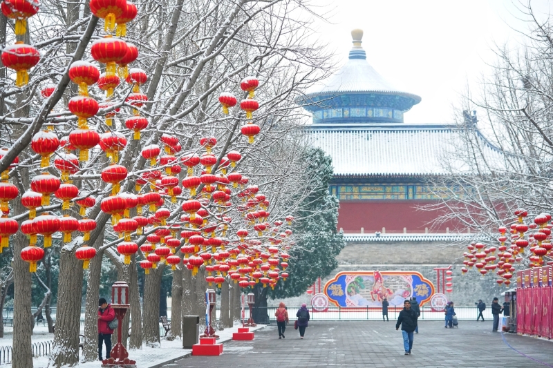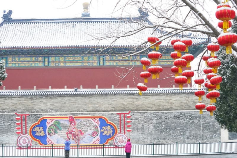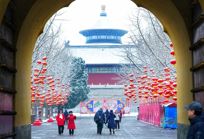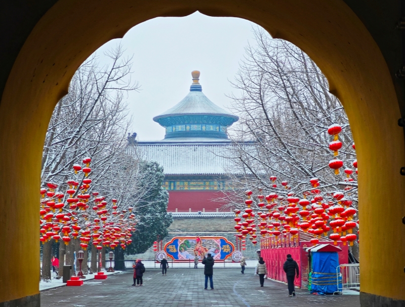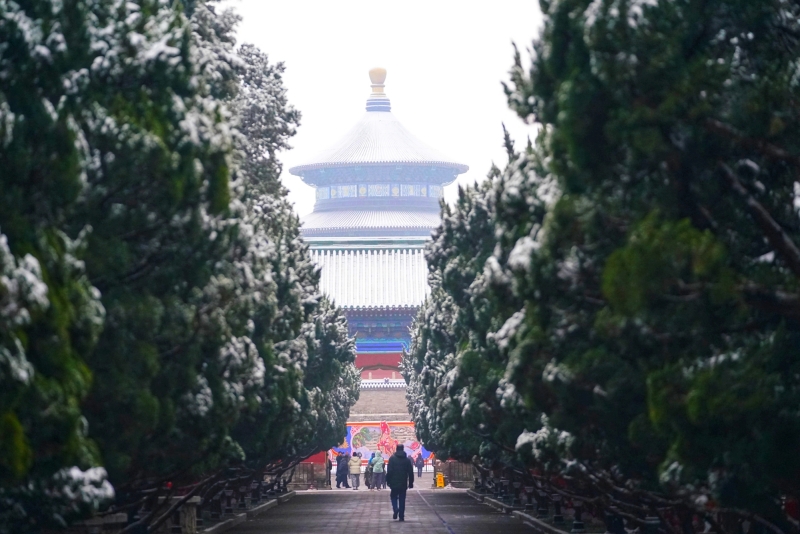 Frühlingsflair der antiken Hauptstadt: Schnee verschönert den Himmelstempel