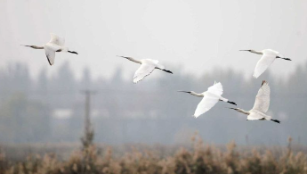 Bürger haben am Ufer des Yongding-Flusses im Bezirk Shijingshan vor Kurzem mehr als zehn Silberreiher, Graureiher und Kormorane beim Spielen im Wasser beobachtet.