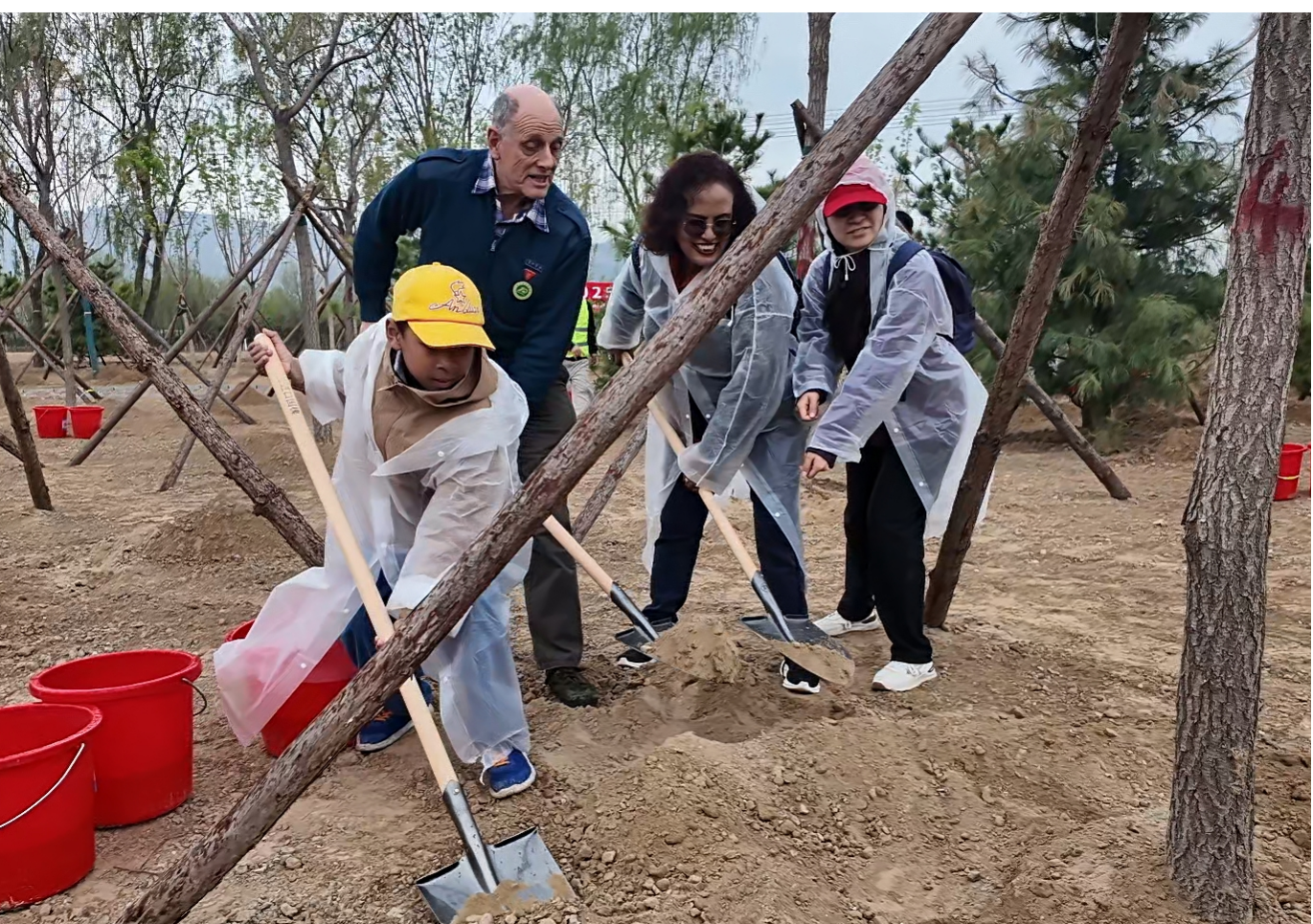 Ausländische Teilnehmer bei der Pflanzung des Internationalen Freundschaftswalds [Foto: Qu Chang]