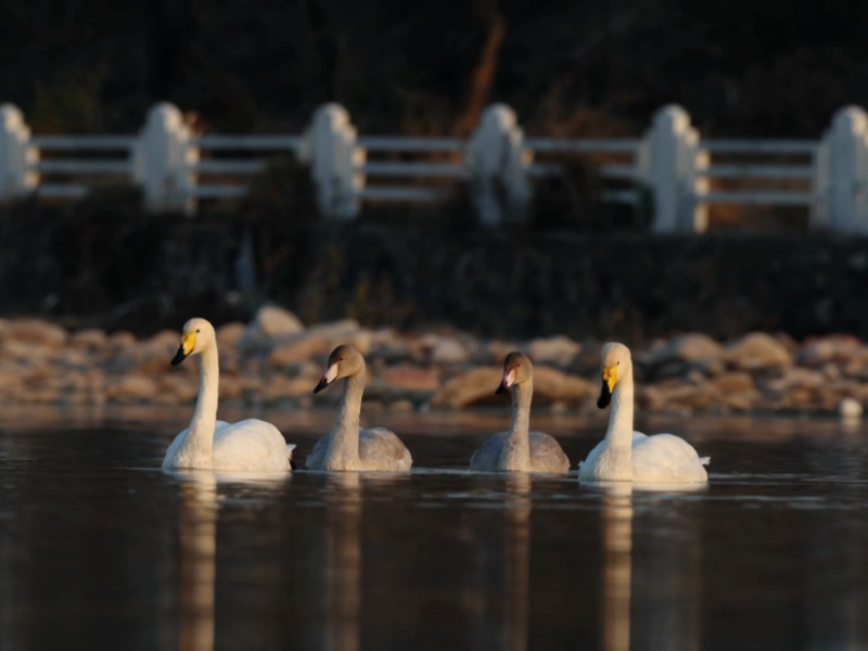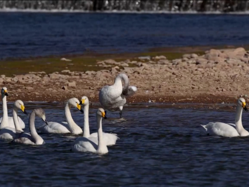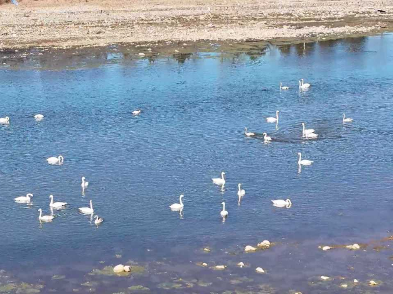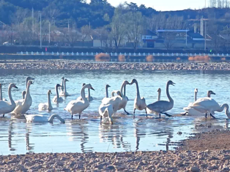 In diesem Winter hat der Abschnitt Taishitun des Qingshui-Flusses im Beijinger Bezirk Miyun eine Gruppe eleganter „Gäste“ begrüßt: Mehr als 60 Schwäne trafen hier nach und nach ein, um zu überwintern. Eine erfreuliche Überraschung für Vogelbeobachter war, dass erstmals drei seltene Schwanenarten – der Singschwan, der Höckerschwan und der Zwergschwan – beim gemeinsamen Aufenthalt in einem gemischten Bestand dokumentiert werden konnten.