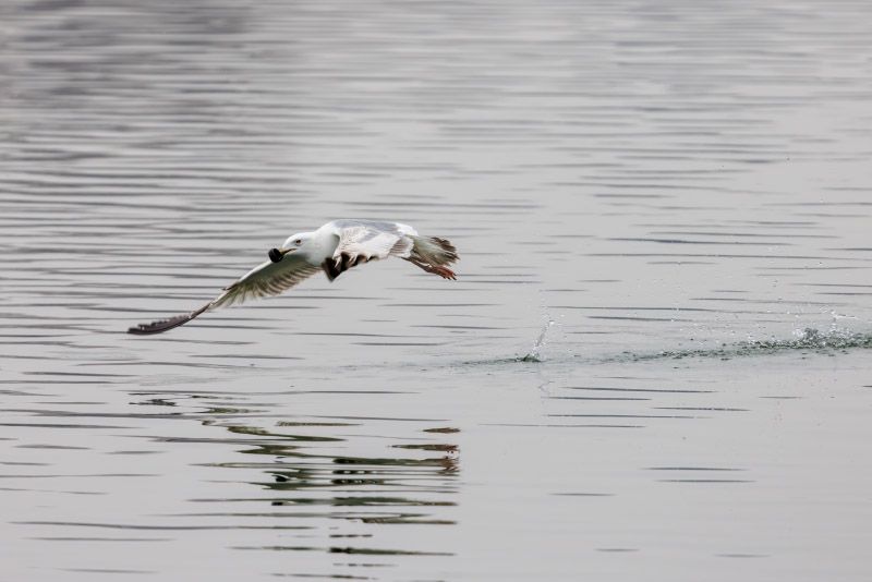 Eine sibirische Silbermöwe bei der Nahrungssuche