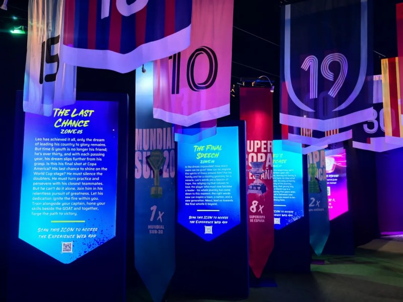 Die Ausstellung erstreckt sich über mehr als 2.000 Quadratmeter und umfasst neun immersive Erlebnisbereiche. Durch die Integration von Künstlicher Intelligenz (KI), Projektionsmapping, 360-Grad-Projektionen und Motion-Capture-Technologie wird ein äußerst immersives Besuchserlebnis geschaffen. In der „World Cup Glory Zone“ versetzen 360-Grad-Panoramaprojektionen und Surround-Sound die Besucher in die glorreichen Momente der Fußball-Weltmeisterschaft 2022 in Katar. In der interaktiven Trainingszone können die Besucher an interaktiven Geschicklichkeitserlebnissen teilnehmen, die vom professionellen Fußballtraining inspiriert sind. In „AR-Fotopoint und Bereich für lebendige Traditionen“ können die Gäste mithilfe von Augmented Reality (AR) und digitaler Überlagerungstechnologie Fotos mit „Messi“ machen, diese sofort herunterladen und teilen. Es warten noch weitere immersive Erlebnisbereiche auf Ihren Besuch!